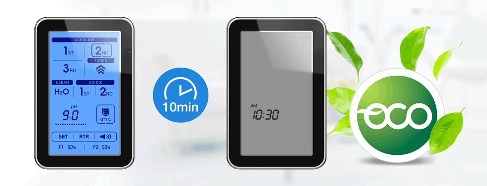 При настройке эко-режима подсветка ЖК-дисплея автоматически отключается в периоды его неиспользования и функция времени отображается. Экономьте энергию с помощью этой благоприятный по отношению к окружающей среде особенностью, которая отображает текущее время при активации